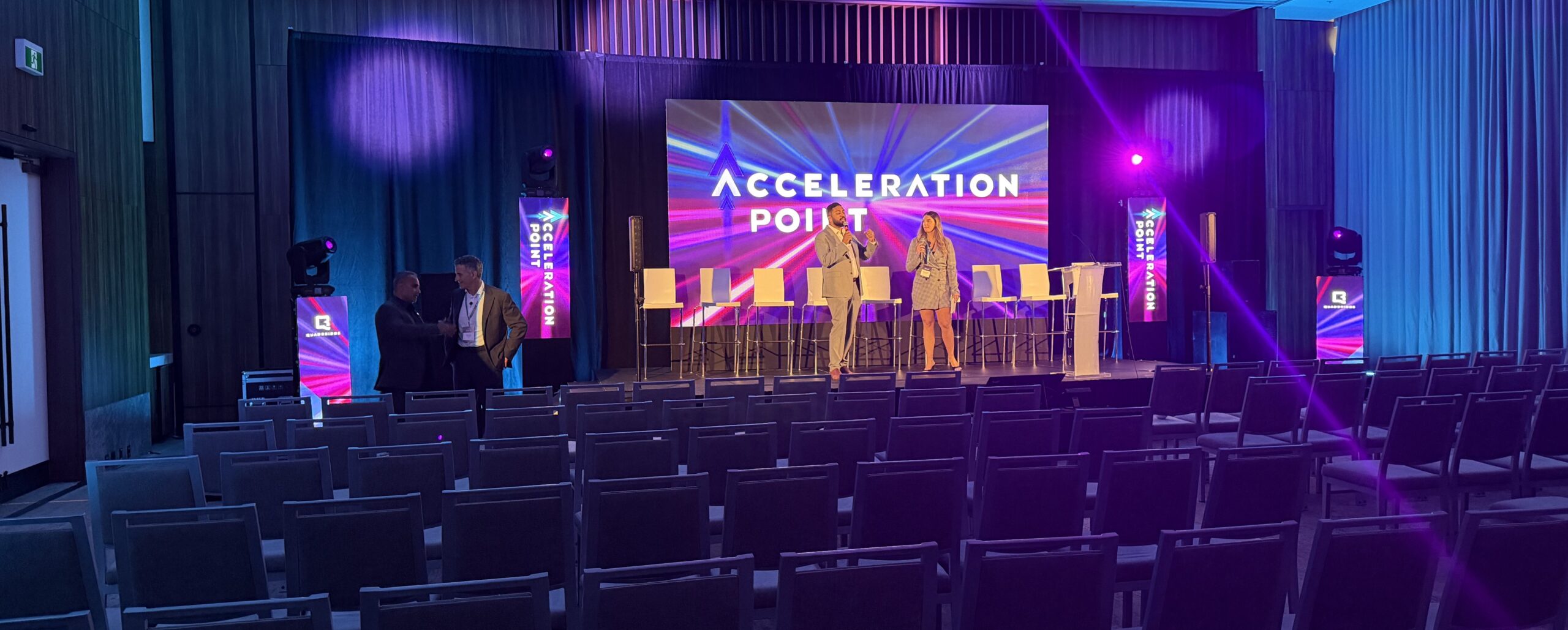 Pour son événement du 30e anniversaire, nous avons été mandaté par Immersive Productions afin de livrer les installations audiovisuelles de cet événement d’envergure de la CAMAQ dans les hangars de l’EMAM. Nous avons développé un concept scénique unique avec scène arrondi et des totems d’écrans LED qui diffusaient du contenu aux couleurs de l’événement. Deux grands écrans de projection avec projecteurs 14k lumens ont été installés pour les quelques 200 invités qui étaient présents pour la journée de conférences. Nous avons également installé plusieurs arches lumineuses et des tubes DEL à l’entrée de la salle dans les couloirs afin de créer une entrée remarquée pour les invités (voir vidéo ci-bas). Nous avons adapté nos équipements et nos ressources à cet imposant hangar qui comportait plusieurs défis comme l’électricité et l’internet.
